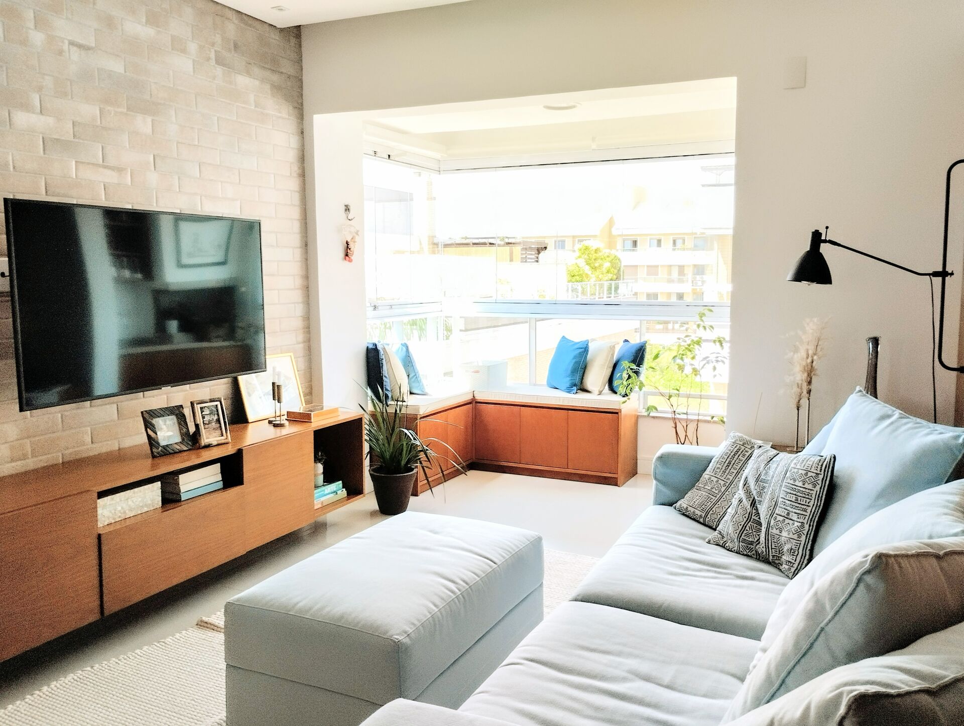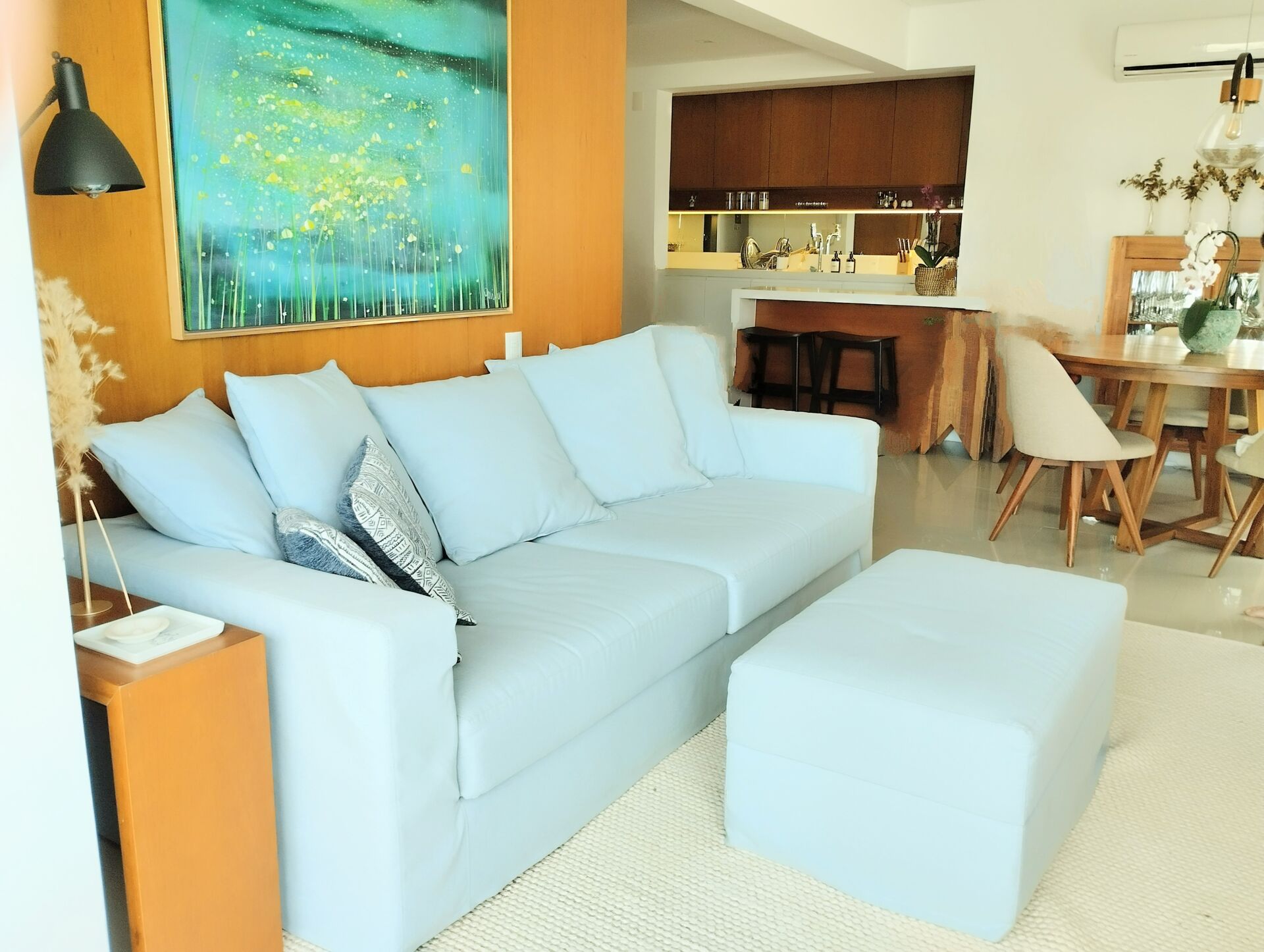 Ambientes integrados de forma harmônica, aconchegante e funcional. Uma atmosfera leve para quem ama viver em um condomínio de frente para o mar!